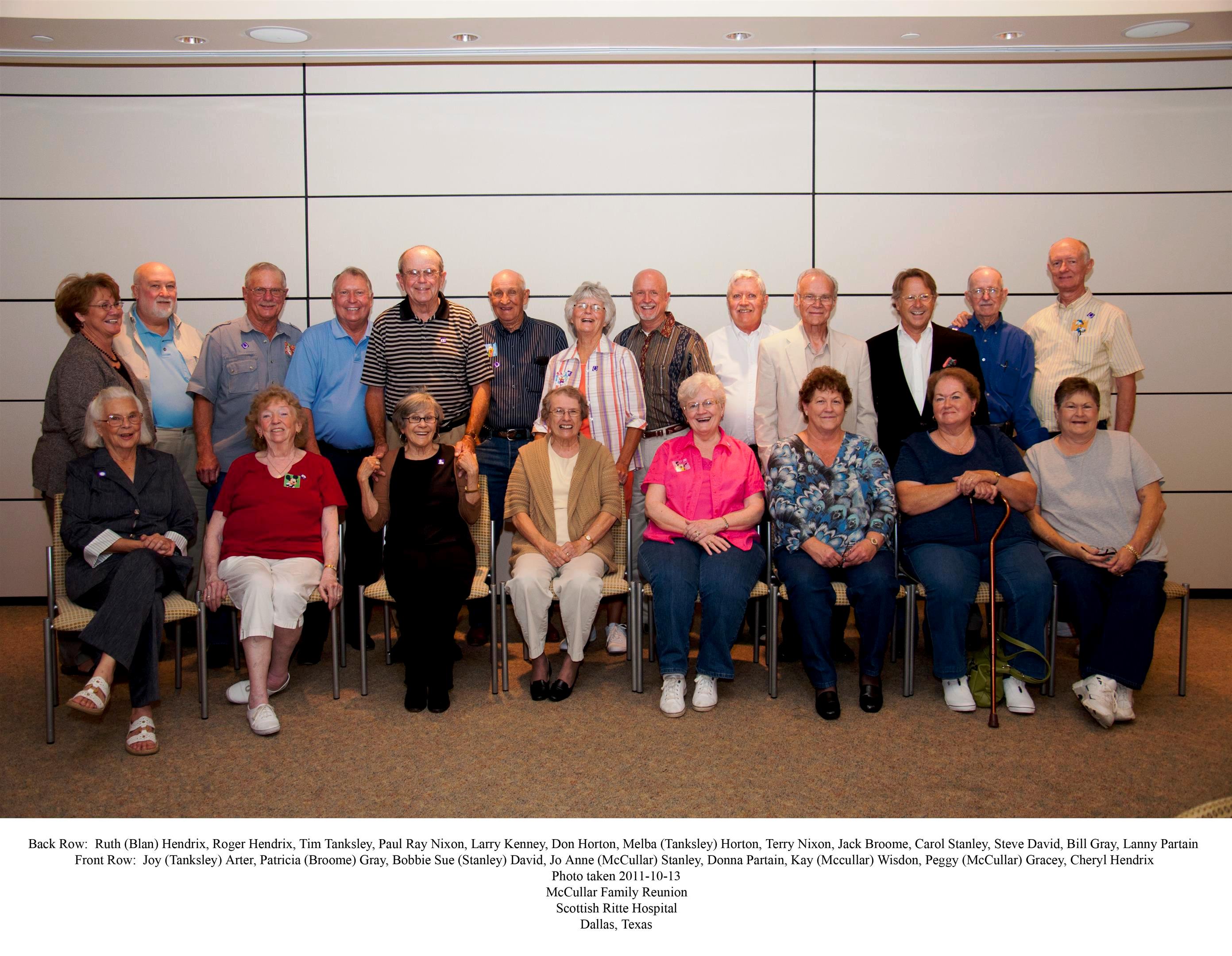 Joy C. (Tanksley) Arter organized the McCullar Cousins Family Reunion, held at the Scottish Rite Children's Hospital in Dallas, Texas, on Oct. 13, 2011.
