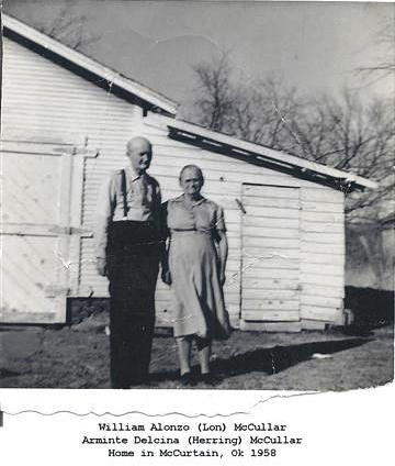 My great grandfather, William Alonzo McCullar, was born in 1878, in Mount Ida, Montgomery County, Arkansas. His parents were William Thomas & Sarah A. (Spicer) McCullar. William Alonzo married Arminda Delcina Herring, August 5, 1898, in Cameron Township, Leflore County, Oklahoma (Indian Territory). They had eleven children: