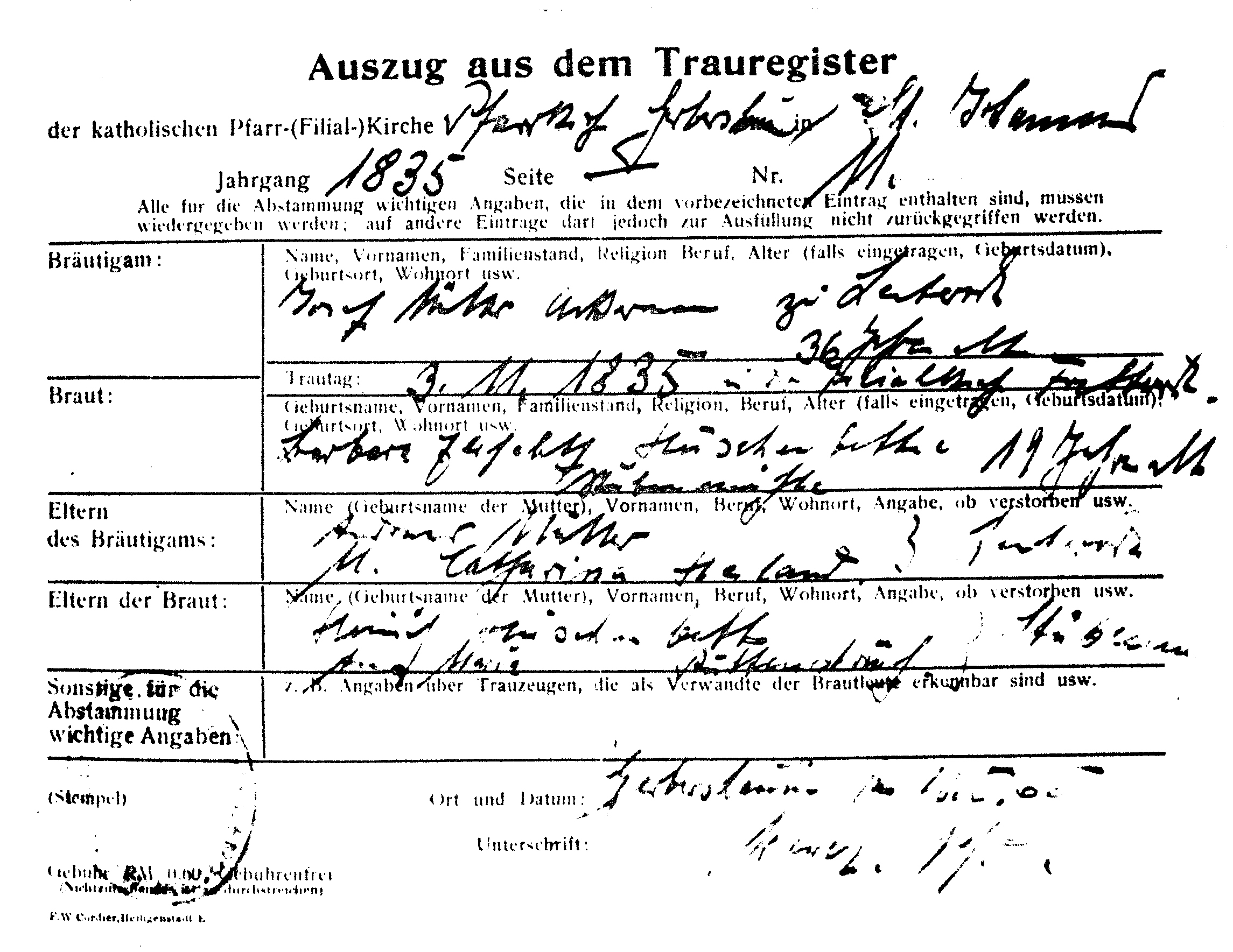 DISCLAIMER: The information presented here is from the book, "The Descendants of Johann Joseph Miller with